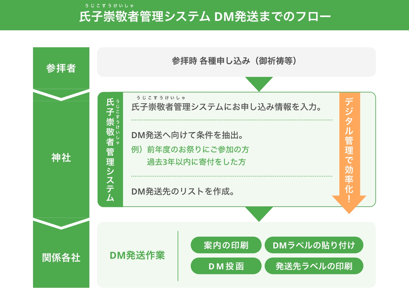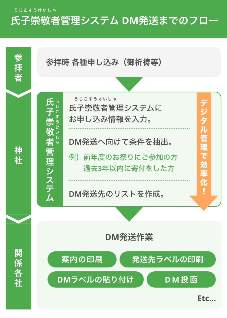氏子崇敬者情報の一元管理により、行事の案内がスムーズに行えます。 -